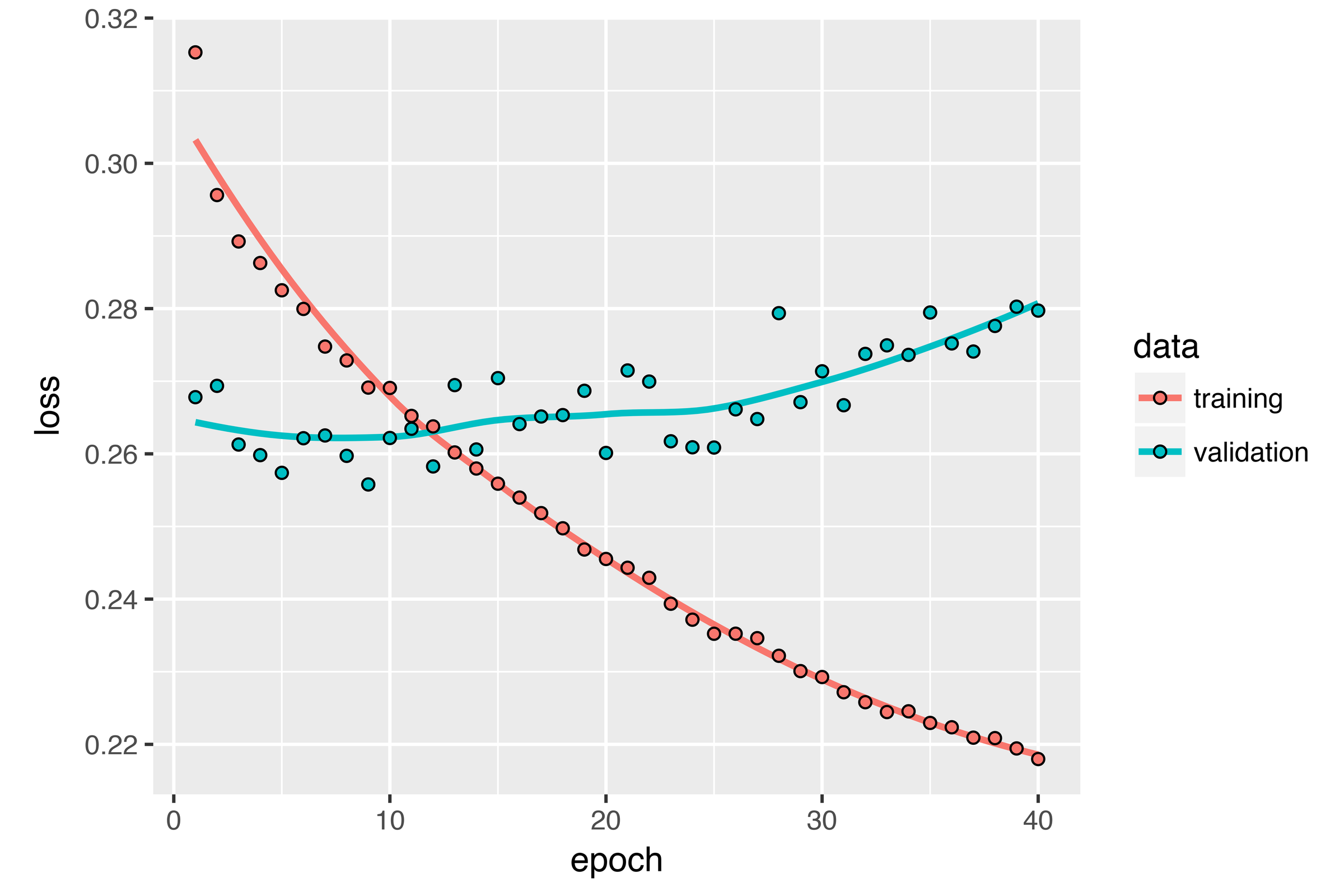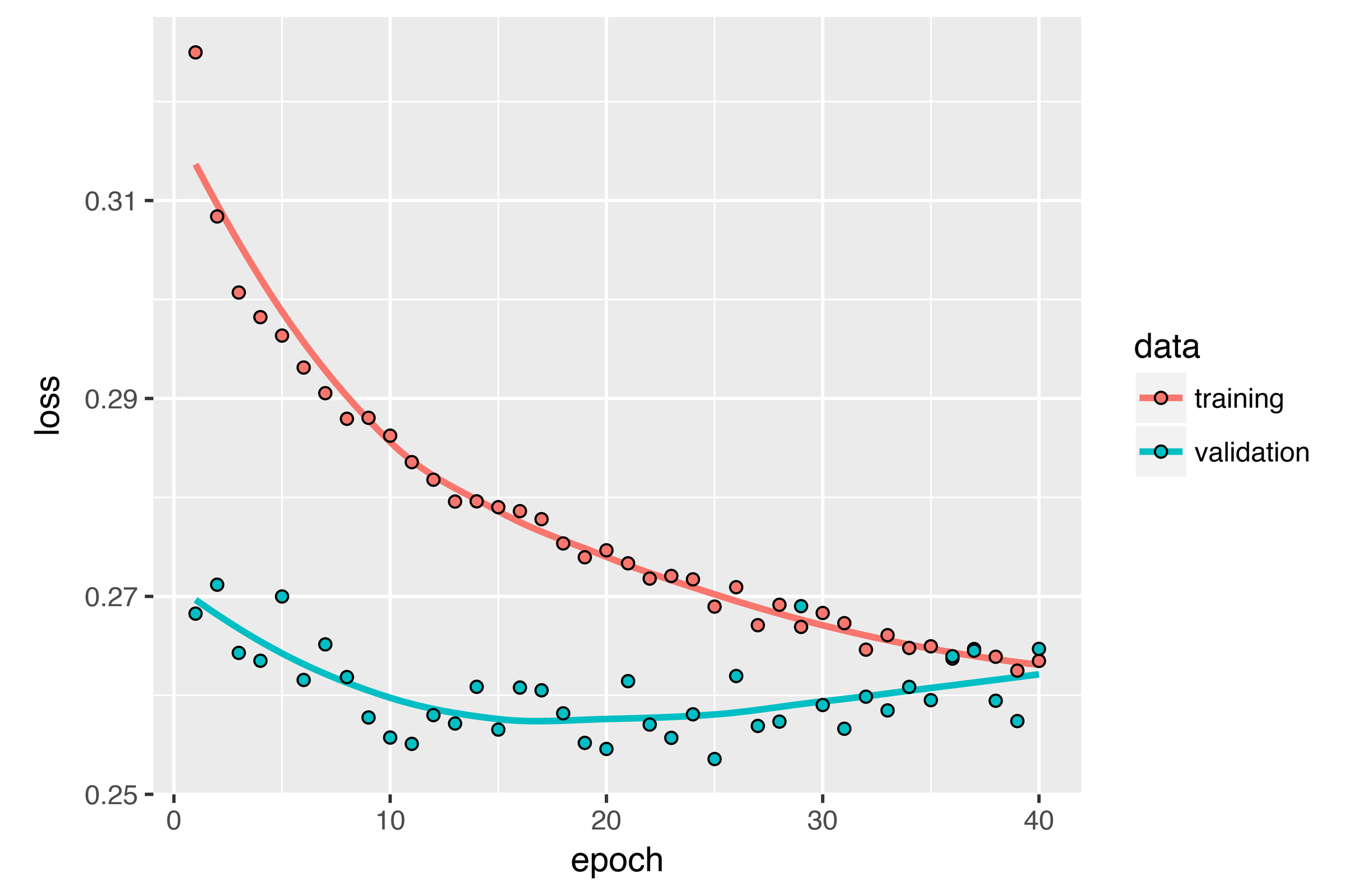 Some of the validation losses are close to the no-learning baseline, but not reliably. This goes to show the merit of having this baseline in the first place: it turns out to be not easy to outperform. Your common sense contains a lot of valuable information that a machine-learning model doesn’t have access to.