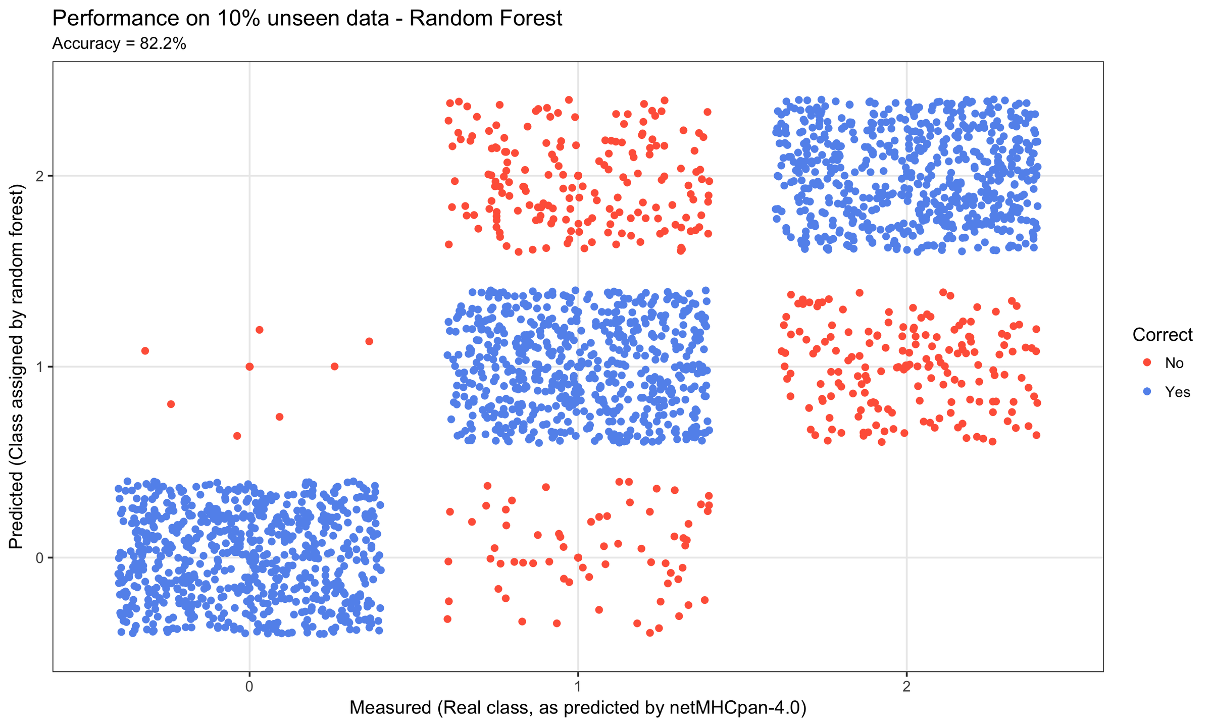 . 10% of the data points were randomly assigned as test data and the remainder as train data. It should be noted that since the data set originates from a model, the outcome of this particular use case will be a model of a model. However, netMHCpan is very accurate (96.5% of natural ligands are identified at a very high specificity 98.5%).