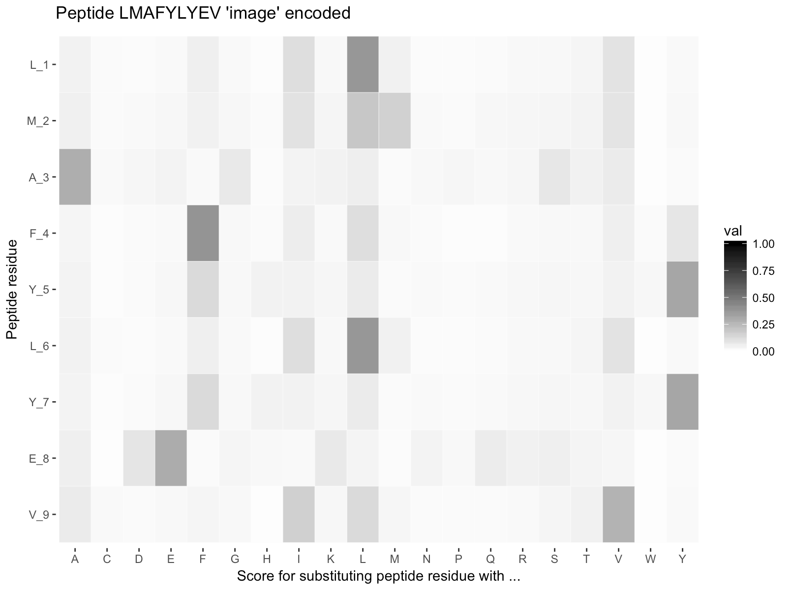 package. This way each peptide is converted to an ‘image’ matrix with 9 rows and 20 columns.