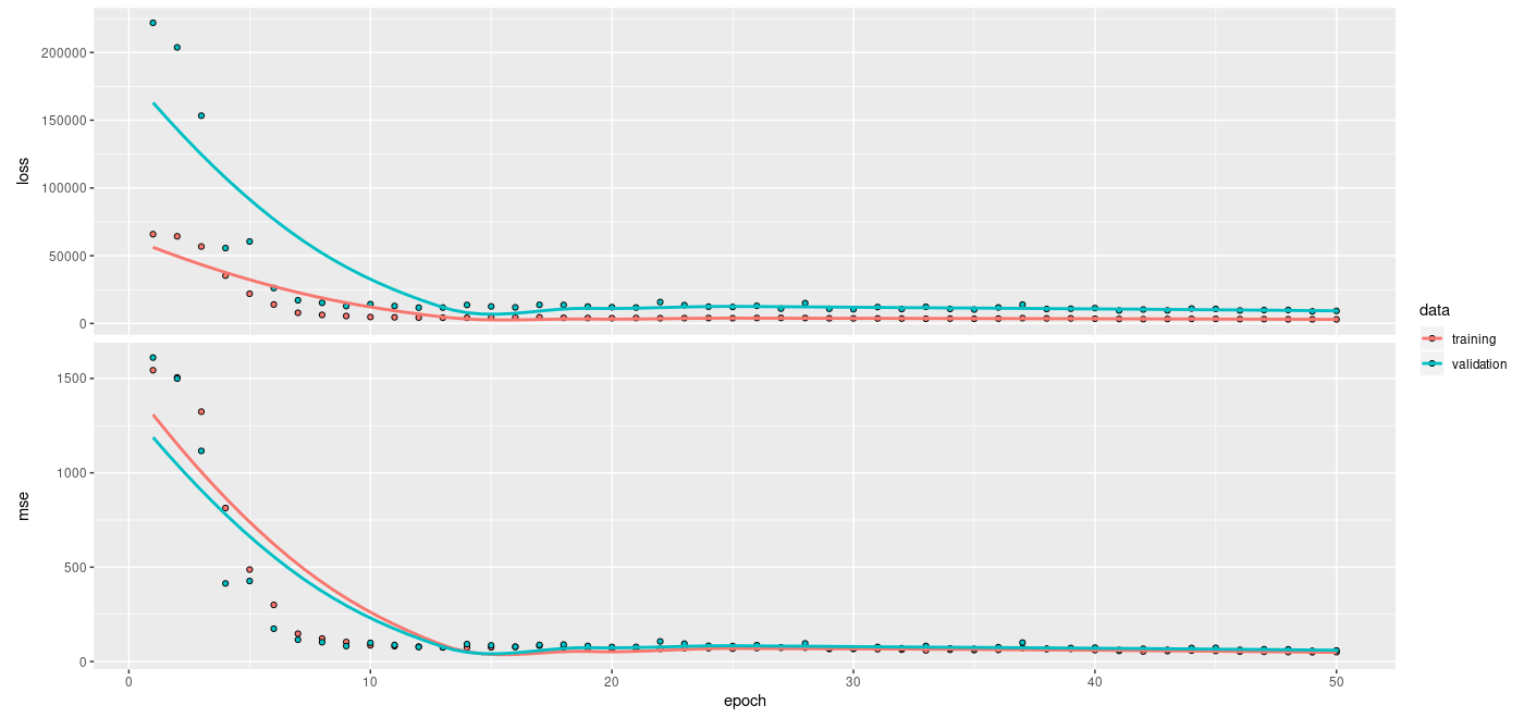 One interesting point to note before we start training: Computation of the posterior predictive parameters involves a Cholesky decomposition, which could fail if, due to numerical issues, the covariance matrix is no longer positive definite. A sufficient action to take in our case is to do all computations using tf$float64:
