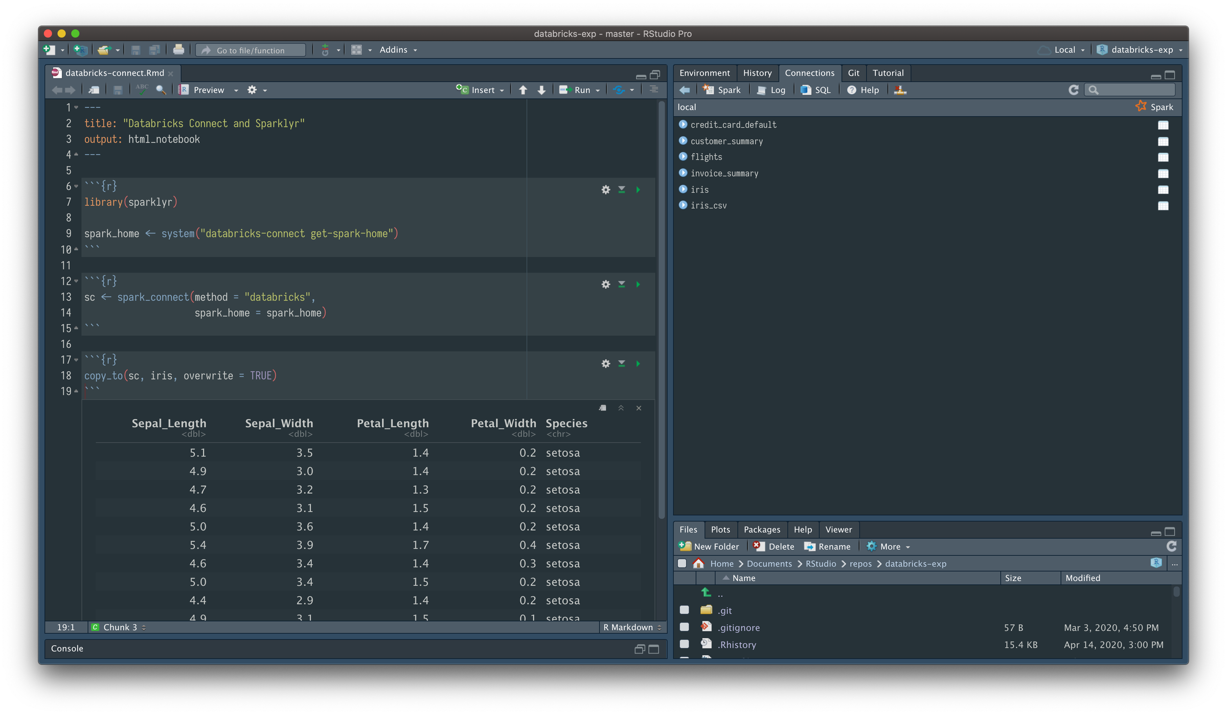 That’s about it, you are now remotely connected to a Databricks cluster from your local R session.