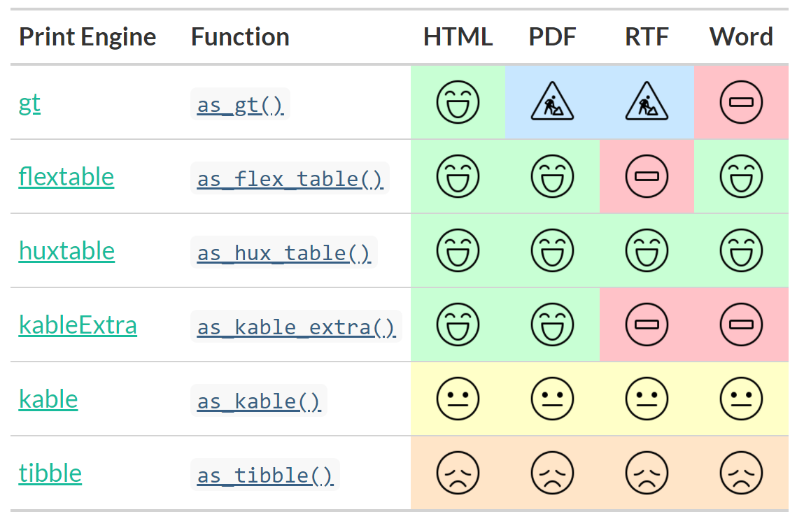 as_gt()function. (Also available:as_flextable(),as_kable_extra()… - Continue formatting as a gt table with any gt function.
