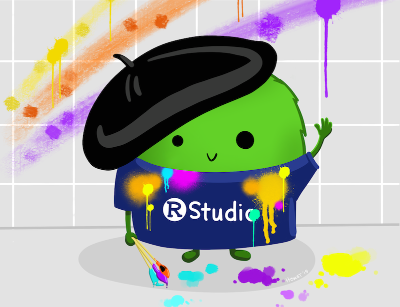 Some of you might know me from my R- and stats-inspired illustrations on twitter ). I’m excited to share that, as of October 2019, I am an Artist-in-Residence with RStudio . My goal as an RStudio Artist-in-Residence is to create useful and engaging illustrations and designs that welcome users to explore, teach, and learn about new packages and functions in R. In this post, I’ll share what motivates me to create R-related artwork, and what I’ll be working on at RStudio.