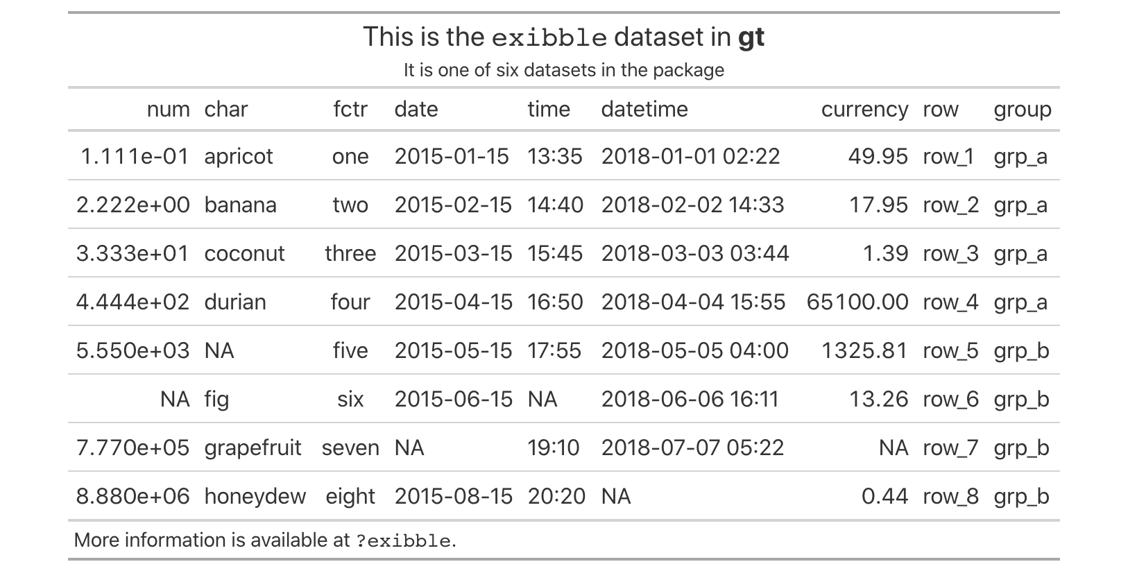 The exibble dataset is included in gt and its raison d’etre is