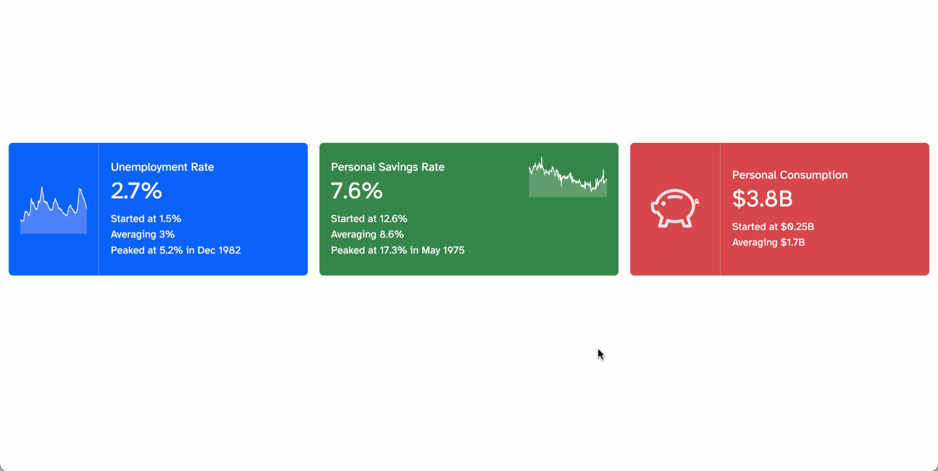 At their most basic level, value boxes provide a simple way to highlight single value with a caption. Optionally, value boxes can showcase some HTML content like an icon or even a plotly graph. In addition, value boxes can also be expanded to full screen which, with some clever usage, can be leveraged to implement "expandable spark lines", like shown below.