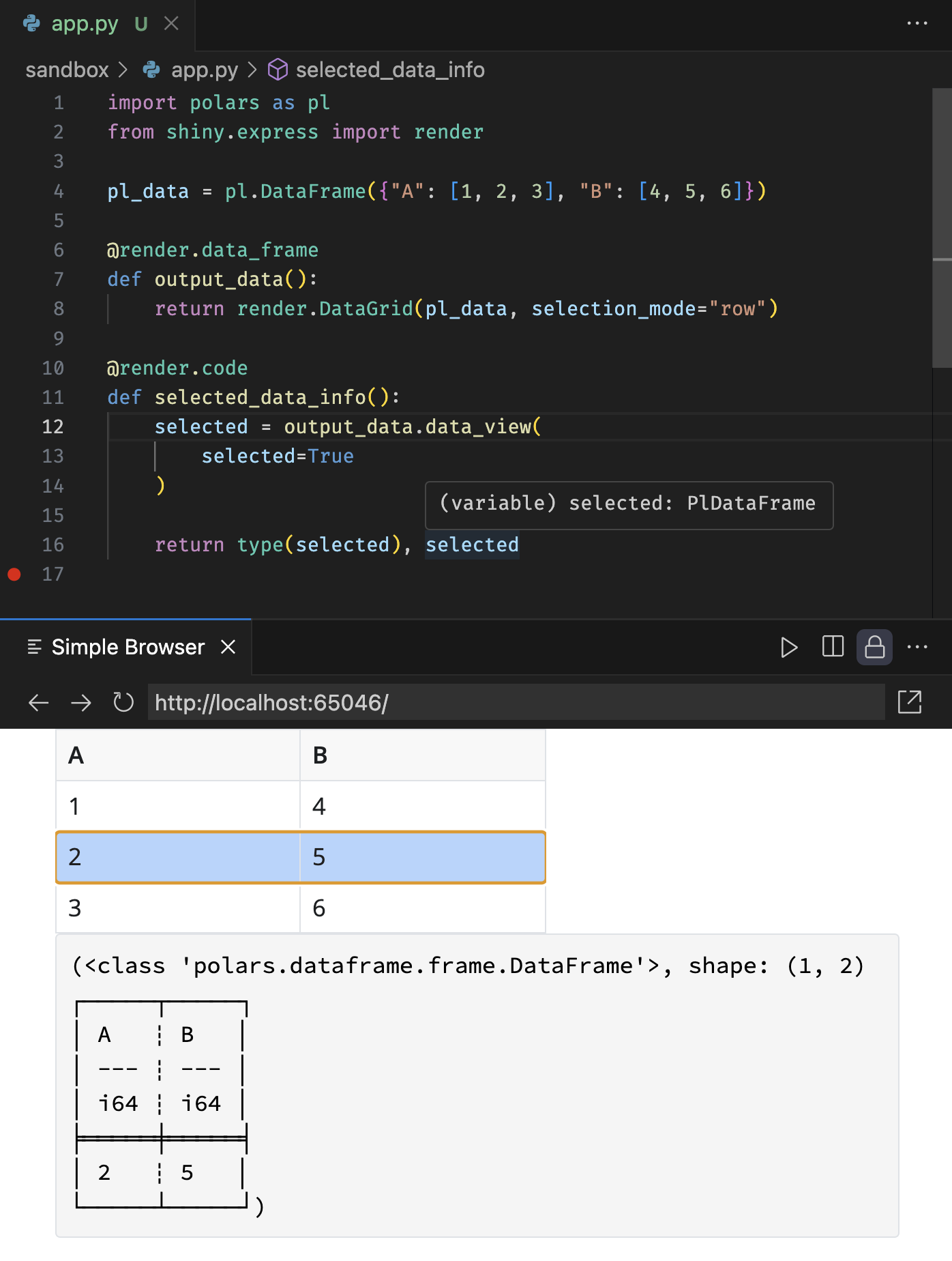 See the screenshot below for an example, and note the polars type hint in the tooltip.
