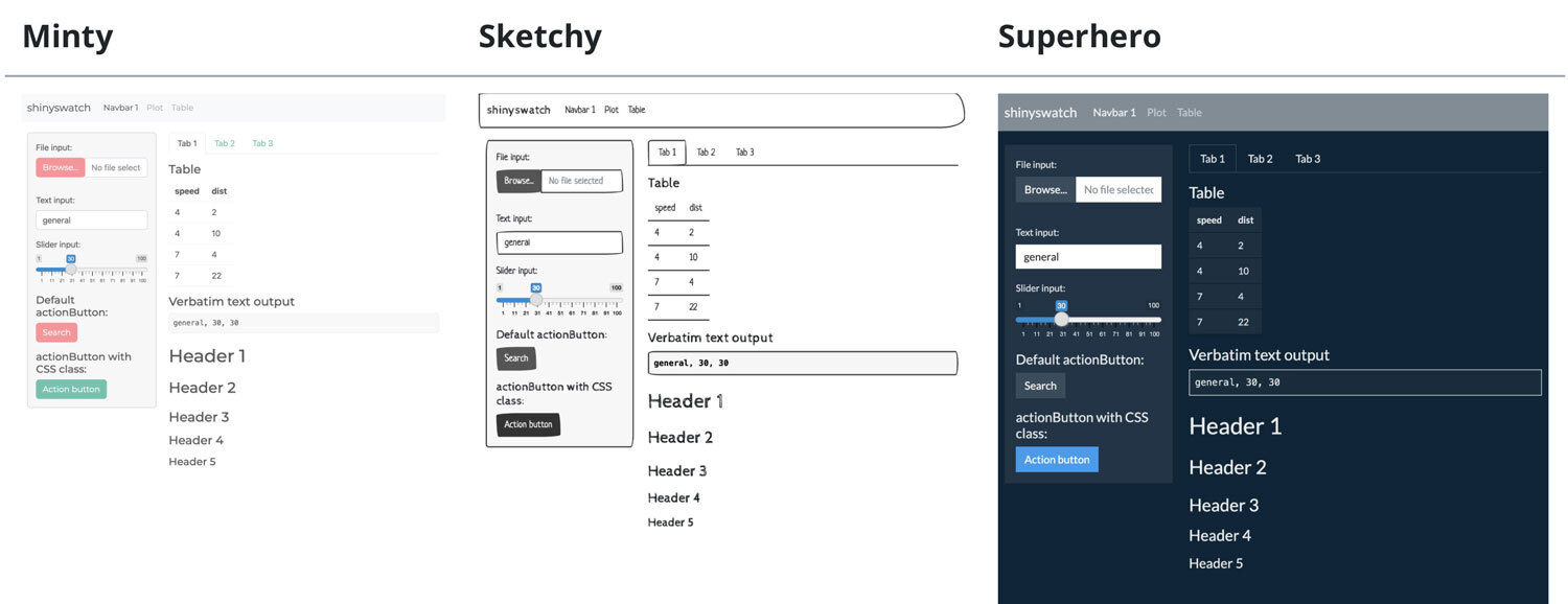 - Use Bootswatch themes with shinyswatch