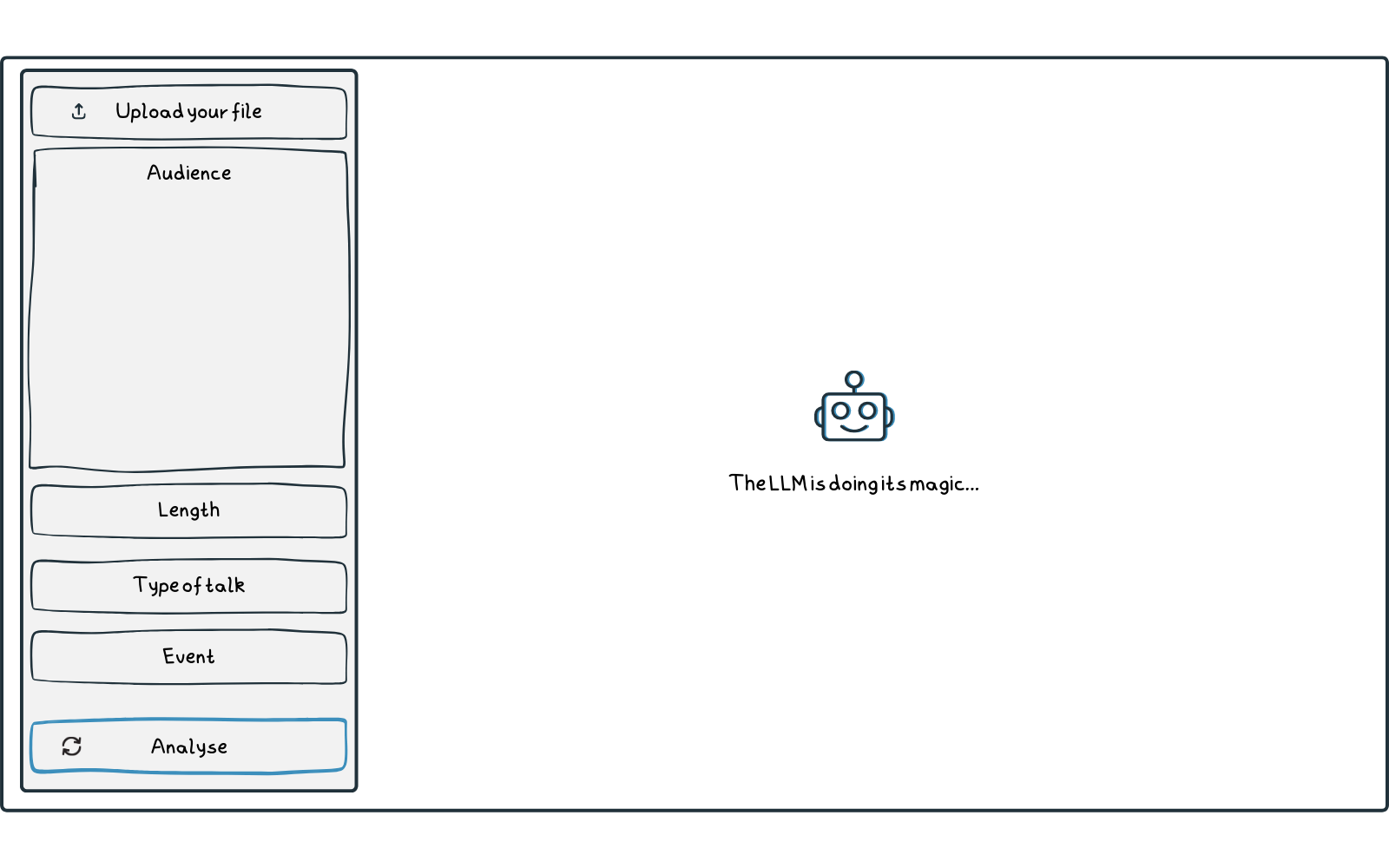 """),ui.layout_sidebar(ui.sidebar(## Sidebar contentui.div(ui.p(ui.strong("Hey, I am DeckCheck!")),ui.p("""I can help you improve your Quarto presentations by analysing them and suggesting improvements. Before I can do that, I need some information about your presentation."""),),ui.input_file("file","Upload your Quarto presentation",accept=[".qmd",".qmdx"],multiple=False,),ui.input_text_area("audience","Describe your audience",height="150px",placeholder="e.g. Python and R users who are curious about AI and large language models, but not all of them have a deep technical background",),ui.input_numeric("length","Time cap for the presentation (minutes)",value=10,min=1),ui.input_text("type","Type of talk",placeholder="e.g. lightning talk, workshop, or keynote",),ui.input_text("event","Event name",placeholder="e.g. posit::conf(2025)"),ui.input_task_button("submit",icon=ui.HTML(robot),label="Analyse presentation",),width=400,),## Main contentui.output_ui("results"),),# Bootswatch themetheme=shinyswatch.theme.flatly,)defserver(input,output,session):@ui.bind_task_button(button_id="submit")@reactive.extended_taskasyncdefquarto_task(file_path,temp_dir):# We're using an Extended Task to avoid blocking. Note that# a temporary directory called within mirai will be# different from the one in the "main" Shiny session. Hence,# we pass a temp_dir parameter to the task and use that.qmd_file=Path(temp_dir)/"my-presentation.qmd"shutil.copy(file_path,qmd_file)# Run asyncio subprocessproc=awaitasyncio.create_subprocess_exec("quarto","render",str(qmd_file),"--to","markdown,html")awaitproc.communicate()# Return the path to the markdown filereturnPath(temp_dir)/"my-presentation.md"@ui.bind_task_button(button_id="submit")@reactive.extended_taskasyncdefchat_task(system_prompt,markdown_content,DeckAnalysis):# We're using an extended task to avoid blocking the session and# we start a fresh chat session each time.# For a feedback loop, we would use a persistent chat session.chat=ChatAnthropic(model="claude-sonnet-4-20250514",system_prompt=system_prompt,)# Set model parameters (optional)chat.set_model_params(temperature=0.8,# default is 1)# Register the tool with the chatchat.register_tool(calculate_slide_metric)# Start conversation with the chat# Task 1: regular chat to extract meta-datachat_res1=awaitchat.chat_async(interpolate("Execute Task 1 (counts). Here are the slides in Markdown: {{ markdown_content }}"))print(chat_res1)# Task 2: structured chat to further analyse the slideschat_res2=awaitchat.chat_structured_async("Execute Task 2 (suggestions)",data_model=DeckAnalysis,)returnchat_res2@reactive.effect@reactive.event(input.submit)asyncdefrun_quarto():req(input.file()isnotNone)try:# Error for testing# raise ValueError("Test error")# Get file path of the uploaded filefile_path=input.file()[0]["datapath"]quarto_task.invoke(file_path,tempfile.gettempdir())exceptExceptionase:warnings.warn(f"Error when trying to invoke quarto_task: {e}")# Print stack trace to the consoletraceback.print_exc()# Return value that triggers modal in UIm=ui.modal(ui.div(# Sad bootstrap iconui.HTML(sad_icon),ui.br(),ui.p("The not so Shiny Side of LLMs. Please check that your Quarto presentation is valid and contains slides."),# add class to center the contentclass_="text-center",),title="Oops, something went wrong!",easy_close=True,footer=ui.modal_button("Close"),)ui.modal_show(m)@reactive.effectdefrun_chat():# require quarto_task result to be availablereq(quarto_task.result()isnotNone)try:# Error for testing# raise ValueError("Test error")# Get the Markdown file path from the complete quarto_taskmarkdown_file=quarto_task.result()# Read the generated Markdown file containing the slidesmarkdown_content=markdown_file.read_text(encoding="utf-8")# Define prompt filesystem_prompt_file=(ROOT_DIR/"prompts"/"prompt-analyse-slides-structured-tool.md")# Create system promptsystem_prompt=interpolate_file(system_prompt_file,variables={"audience":input.audience(),"length":input.length(),"type":input.type(),"event":input.event(),"markdown_content":markdown_content,},)# Trigger the chat task with the provided inputschat_task.invoke(system_prompt,markdown_content,DeckAnalysis)exceptExceptionase:warnings.warn(f"Error when trying to invoke chat_task: {e}")# Print stack trace to the consoletraceback.print_exc()# Return value that triggers modal in UIm=ui.modal(ui.div(# Sad bootstrap iconui.HTML(sad_icon),ui.br(),ui.p("The not so Shiny Side of LLMs. Unfortunately, chatting didn't work out. Do you have enough credits left?"),# add class to center the contentclass_="text-center",),title="Oops, something went wrong!",easy_close=True,footer=ui.modal_button("Close"),)ui.modal_show(m)@reactive.calcdefanalysis_result():res=chat_task.result()ifresisnotNone:returnmake_frames(res)else:returnNone@render.uiasyncdefresults():ifquarto_task.status()=="running":returnui.div(ui.HTML(file_slides_loader),ui.br(),ui.p("Processing your Quarto presentation..."),class_="text-center d-flex flex-column justify-content-center align-items-center",style="height: 100%",)elifchat_task.status()=="running":returnui.div(ui.HTML(robot_loader),ui.br(),ui.p("The LLM is doing its magic..."),class_="text-center d-flex flex-column justify-content-center align-items-center",style="height: 100%",)elifchat_task.status()=="success":returnui.TagList(ui.layout_column_wrap(ui.tooltip(ui.value_box("Showtime",ui.output_text("showtime"),showcase=ui.HTML(file_slides),theme="primary",),"Slides are being counted based on the provided Quarto presentation, then an educated guess is made about the time it will take to present them.",),ui.tooltip(ui.value_box("Code Savviness",ui.output_text("code_savviness"),showcase=ui.HTML(file_code),theme="primary",),"Code Saviness is calculated based on the slides that contain code chunks. The percentage is the ratio of those slides to total slides.",),ui.tooltip(ui.value_box("Image Presence",ui.output_text("image_presence"),showcase=ui.HTML(file_image),theme="primary",),"Image