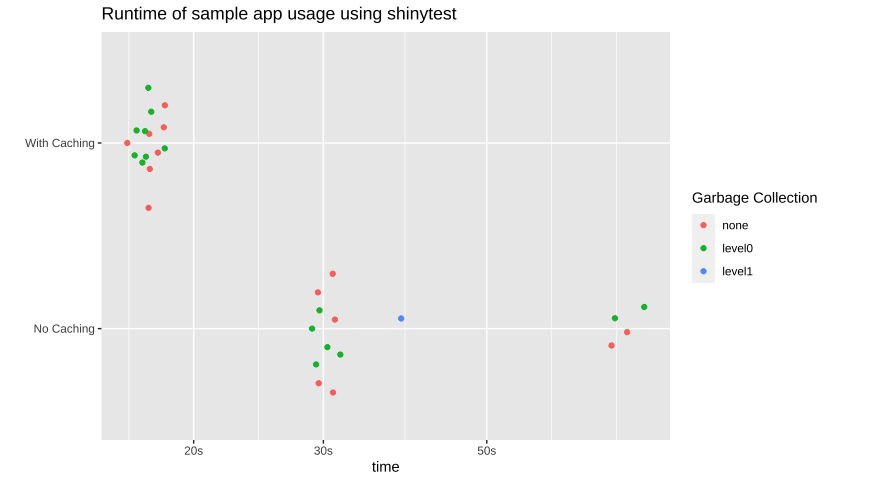 It’s important to note that the most time-consuming aspect of these tests is actually starting the shinytest instance, so the difference in usable speed is even greater than seen here.