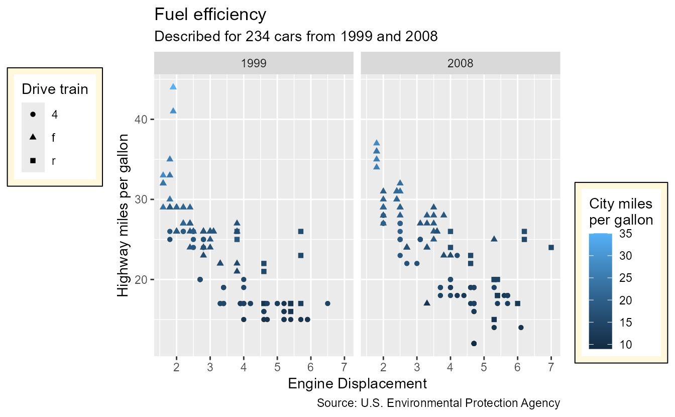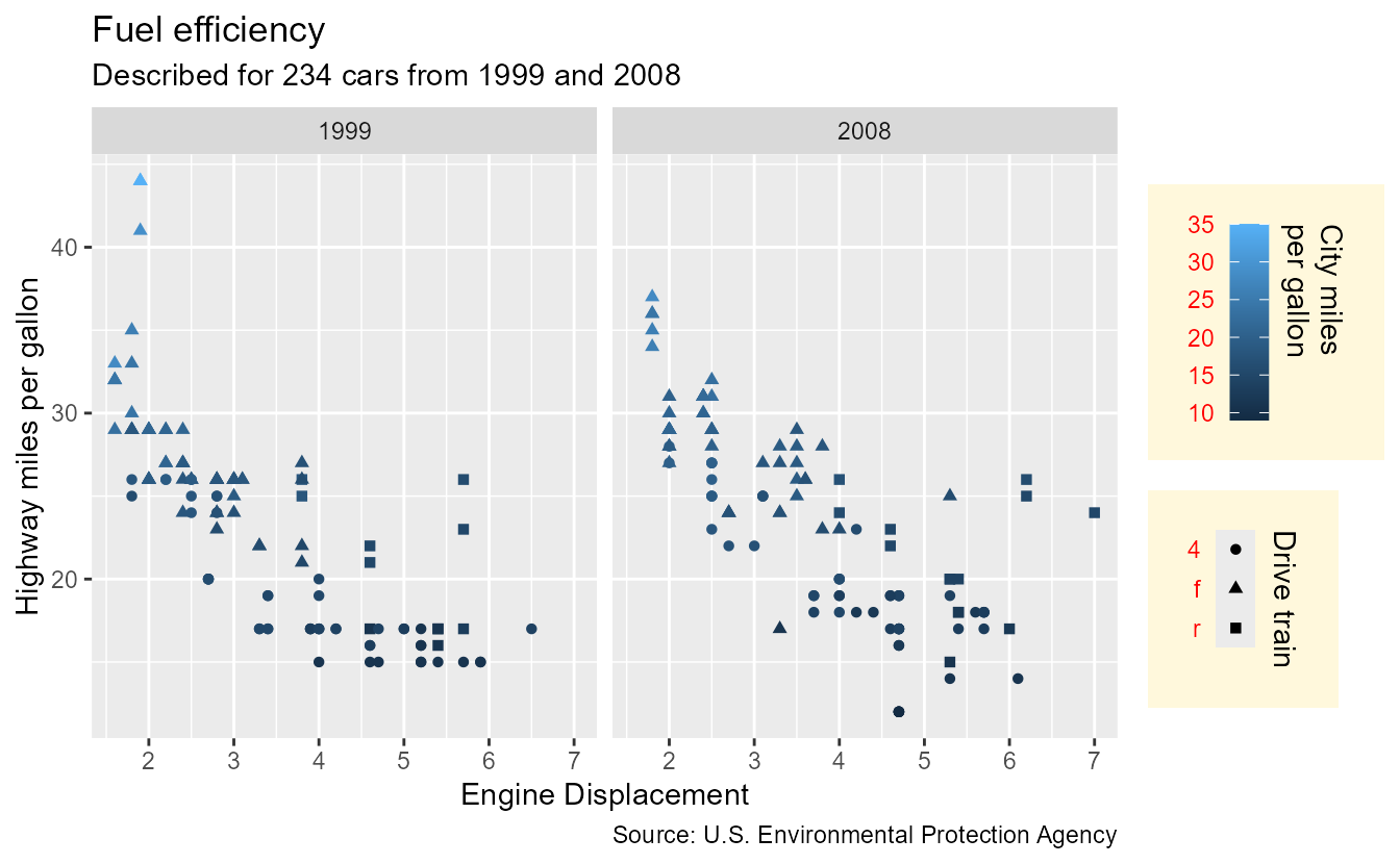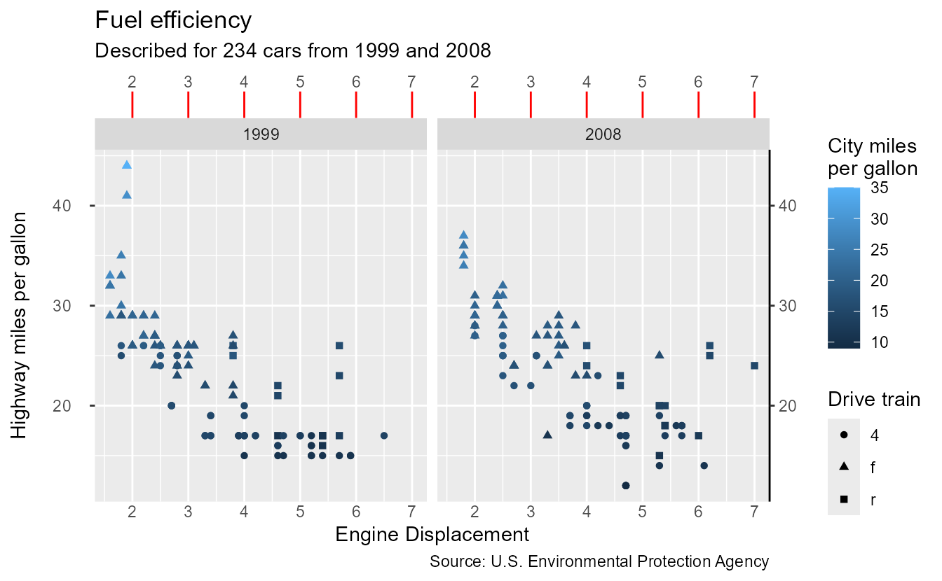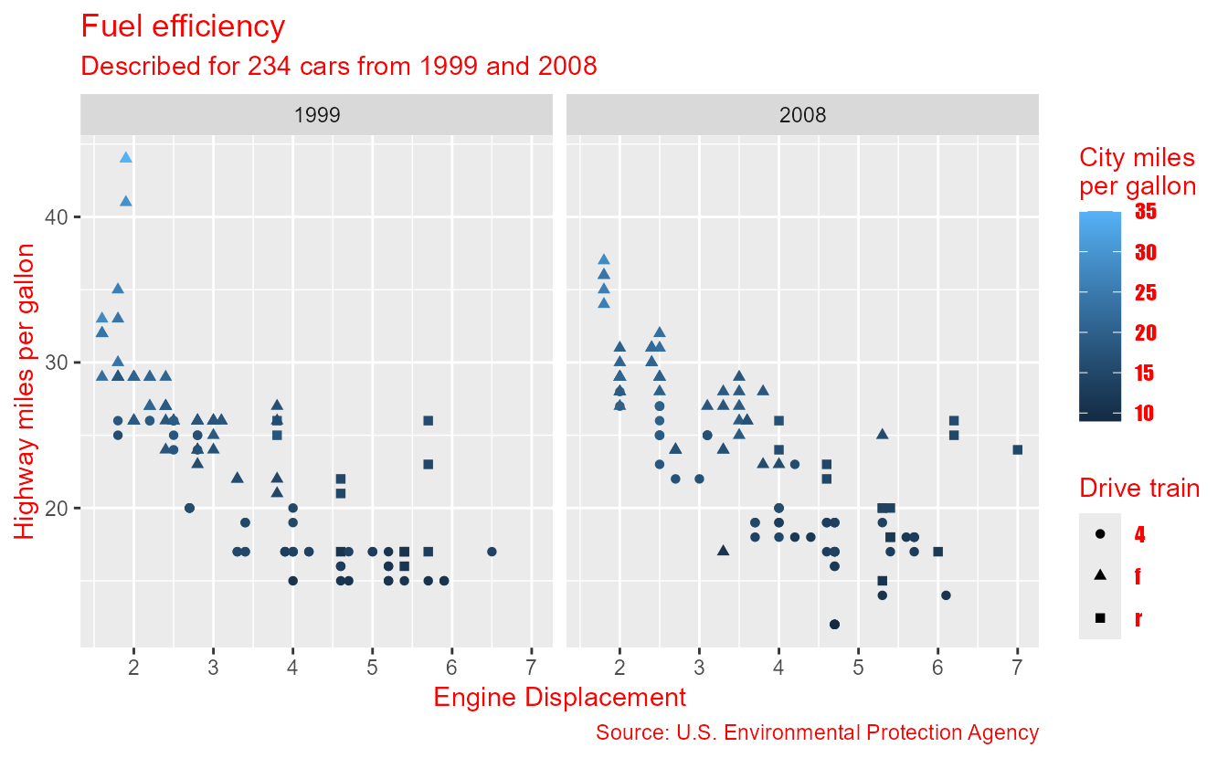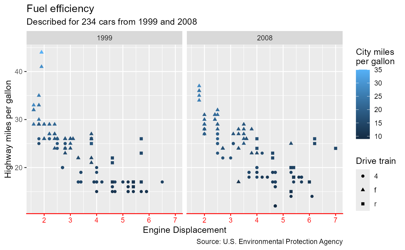 subtitle = paste0("Described for ", nrow(mpg), " cars from 1999 and 2008"),
