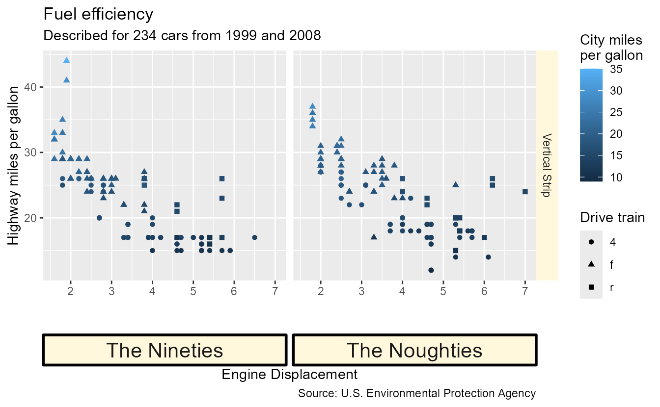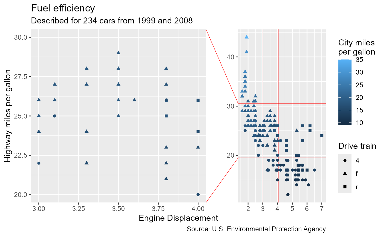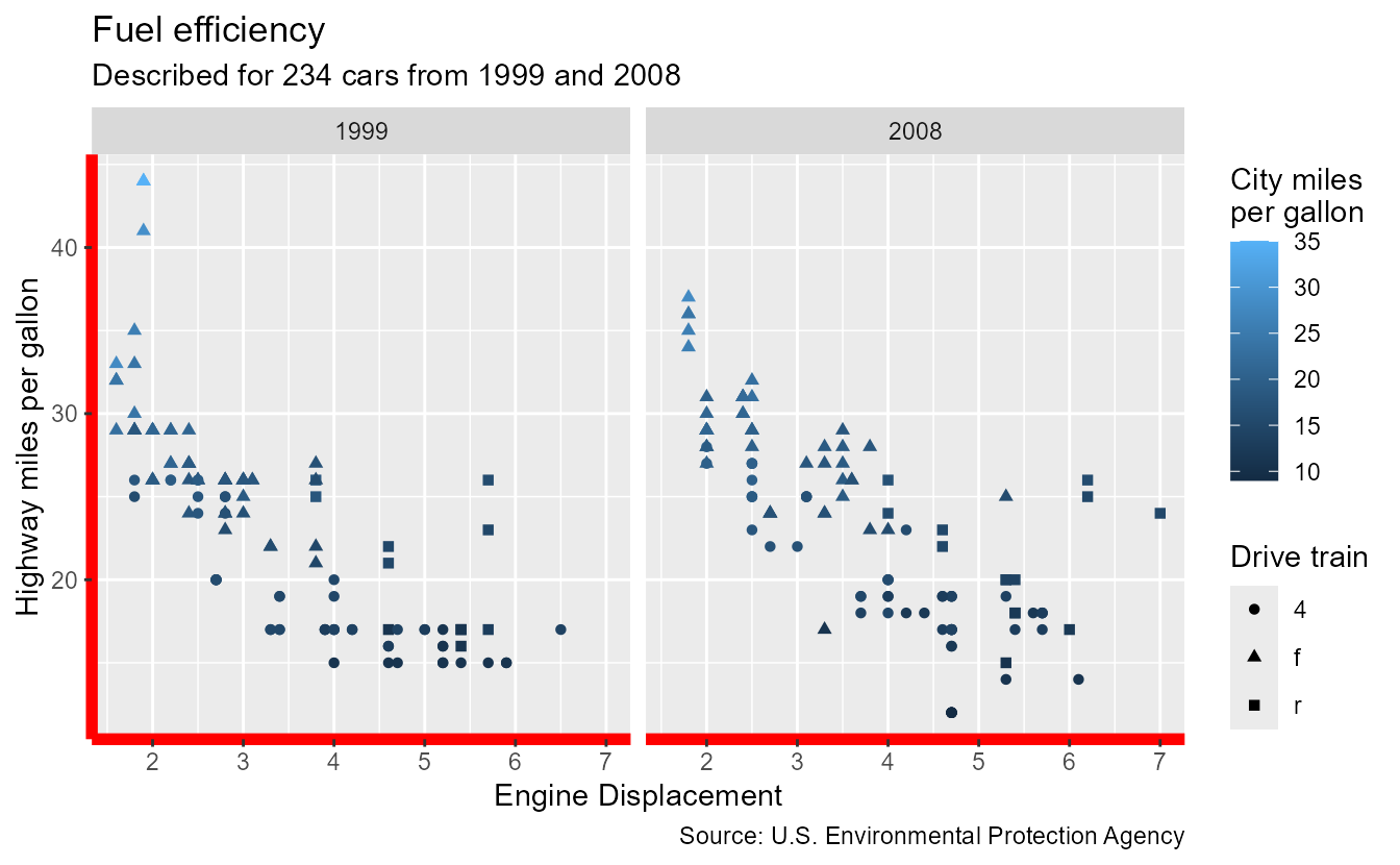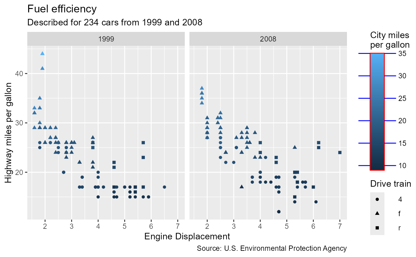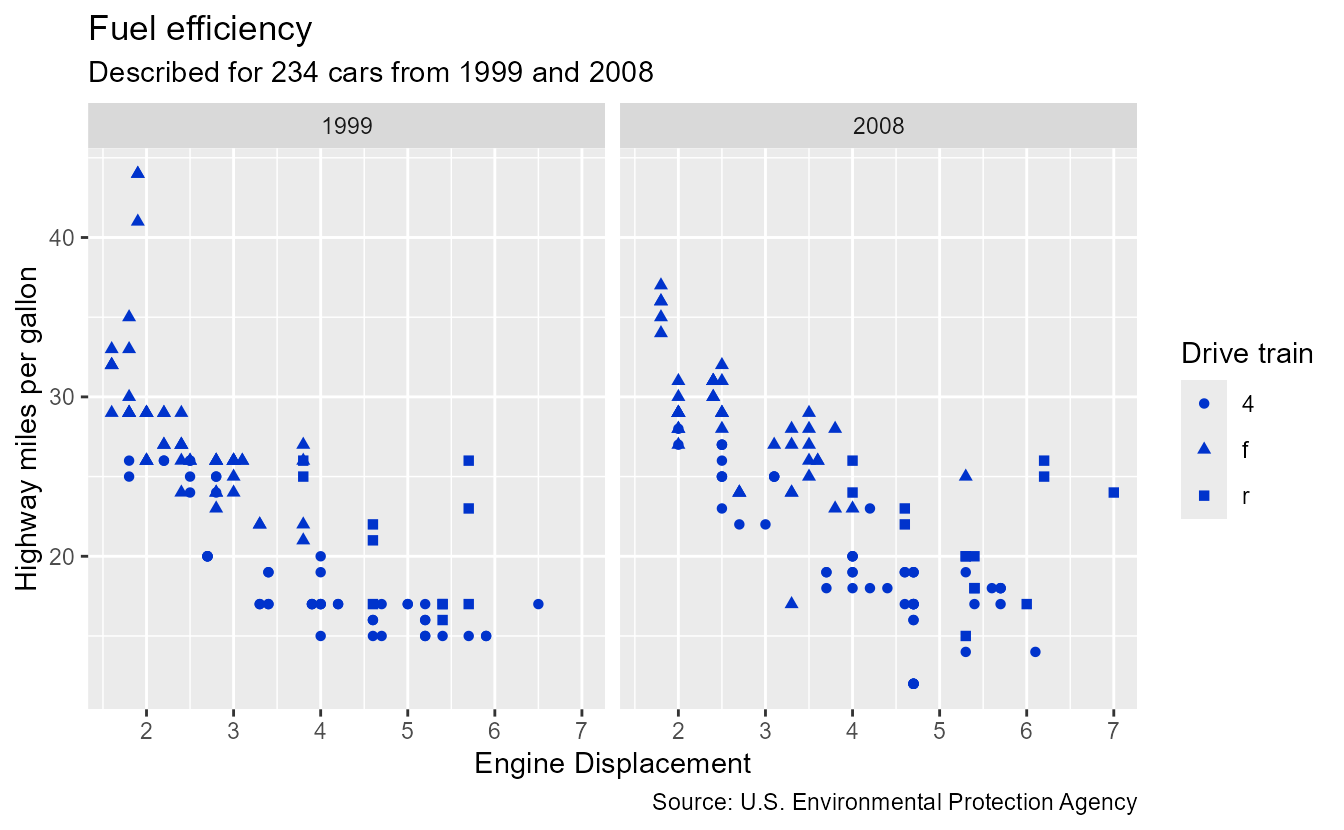 subtitle = paste0("Described for ", nrow(mpg), " cars from 1999 and 2008"),