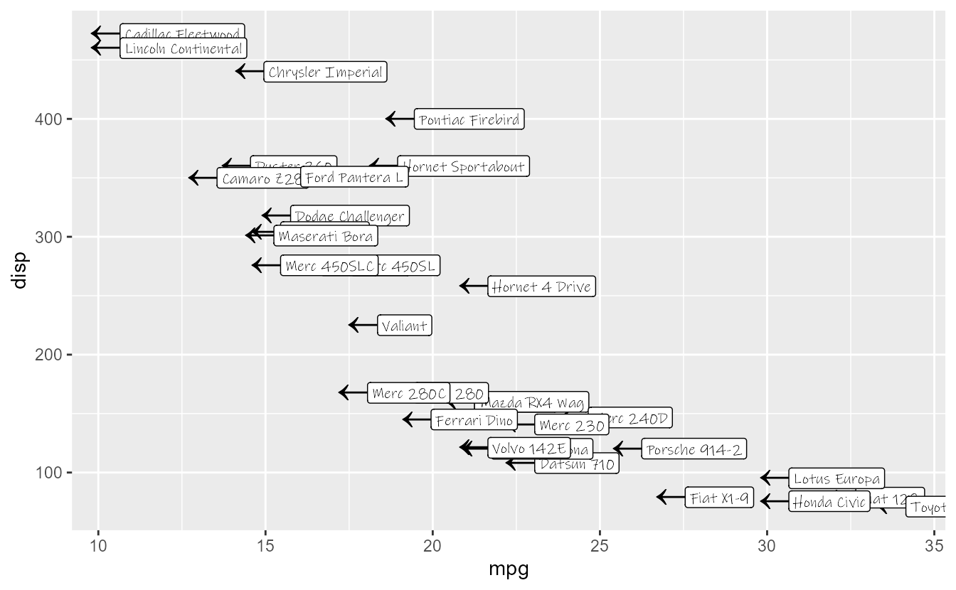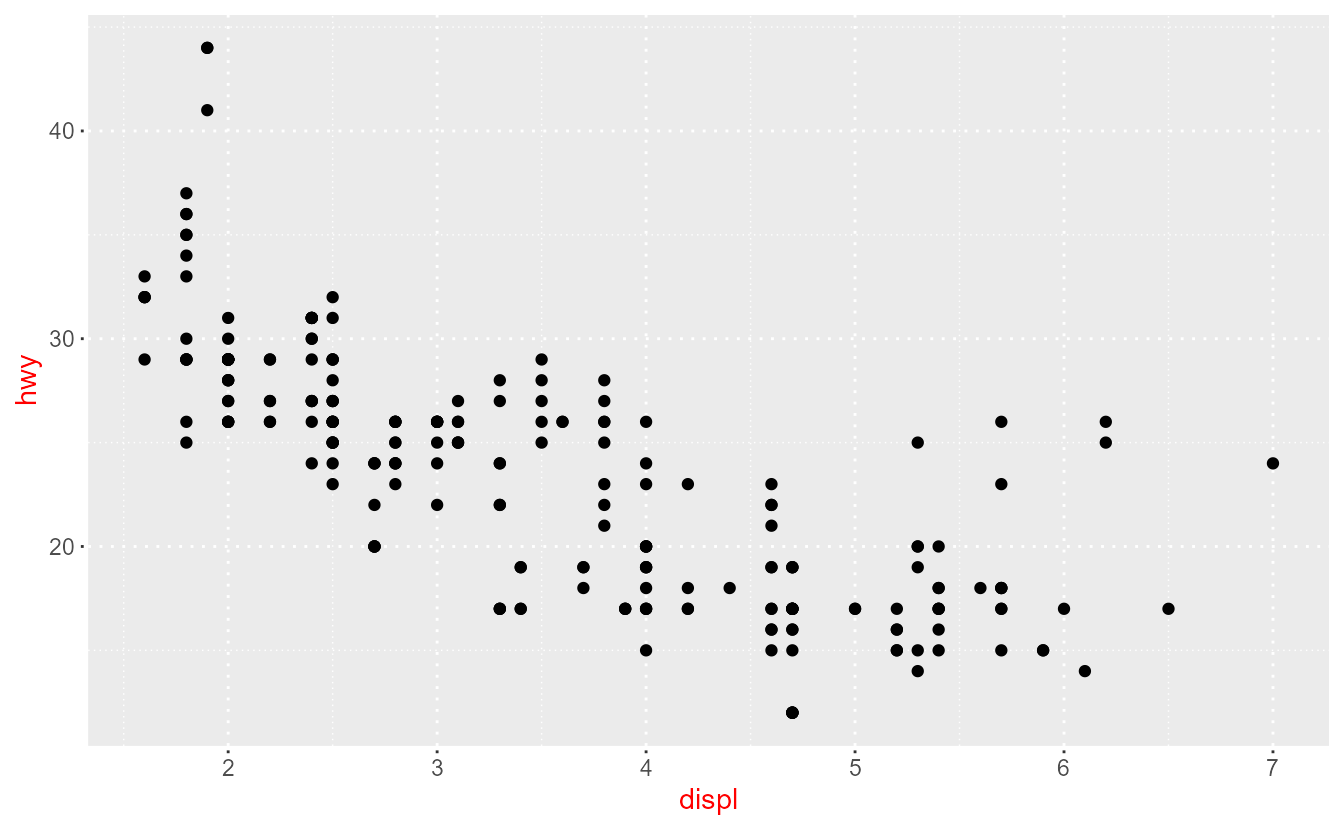 ggplot(mpg, aes(displ, hwy)) +